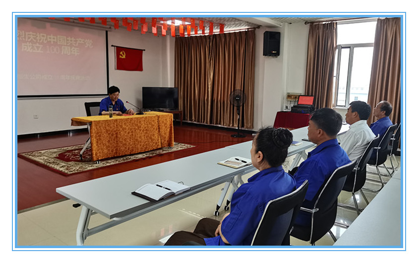 2021年7月3日上午8:00点,盘锦恒生公司在四楼会议室举行热烈庆祝中国共产党成立100周年大会,全体党员在面向党旗重温入党誓词,党支部书记胡志庭作了重要讲话。