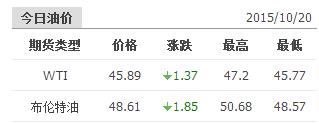 2015年10月20日国际原油价格表