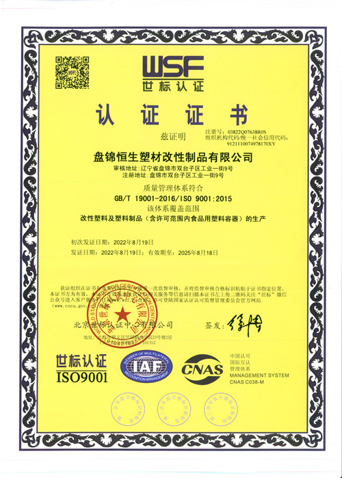 盘锦恒生塑材改性制品有限公司坐落在辽宁省盘锦精细化工产业开发区,总占地面积21000平方米,年生产能力在 3 万吨,是辽宁省生产制造全系列塑料制品的高科技研发型企业。